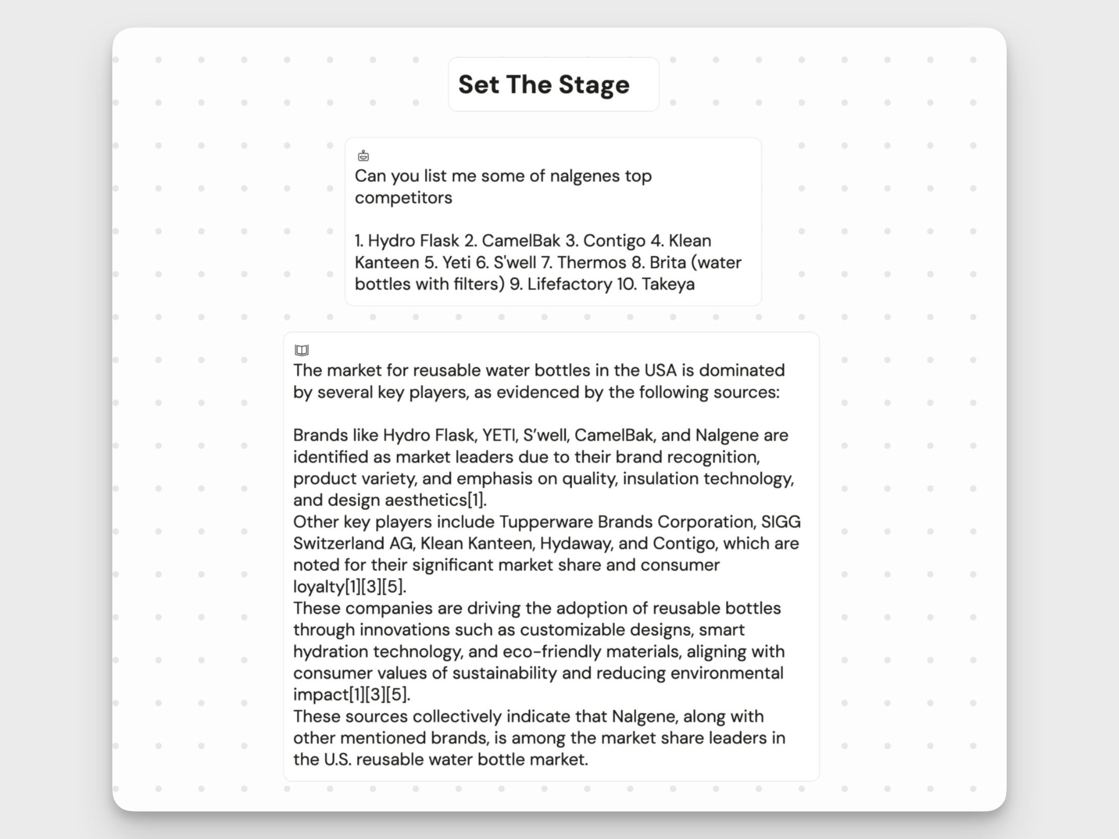 - Example Validator prompts: Who are the key players in the <insert category> market?