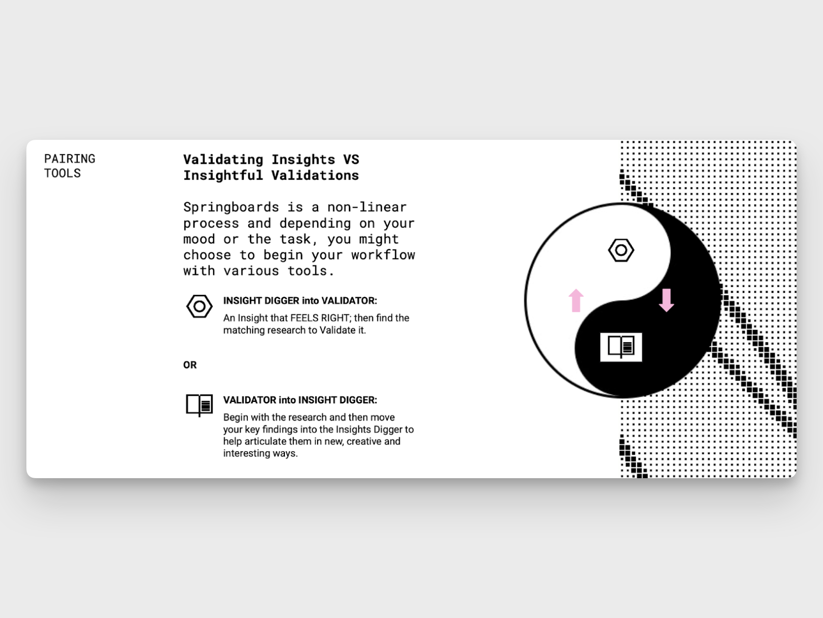 - Start in the Insight Digger tool → follow up with The Validator tool.
