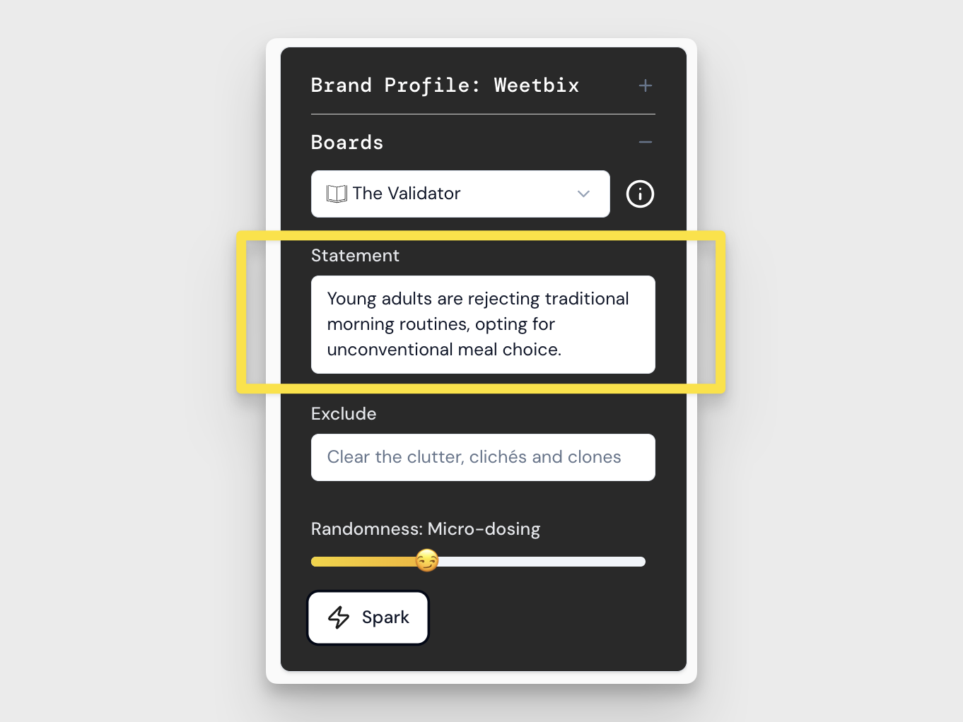 You’ve got a gut instinct or a spicy insight. Don’t second-guess it—stress test it. Drag your insight from the Insight Digger into The Validator to give your hunch data legs.