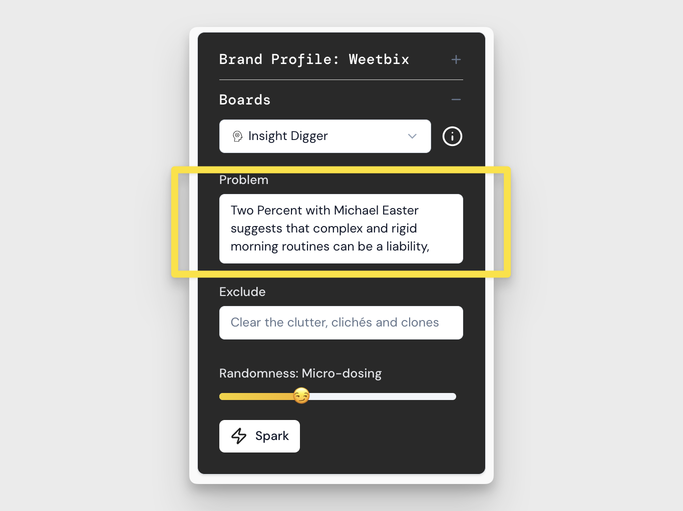 You trip over a weird trend or killer stat. Now the job is to give it soul. Drag your stat from The Validator into the Insight Digger to find the human angle.