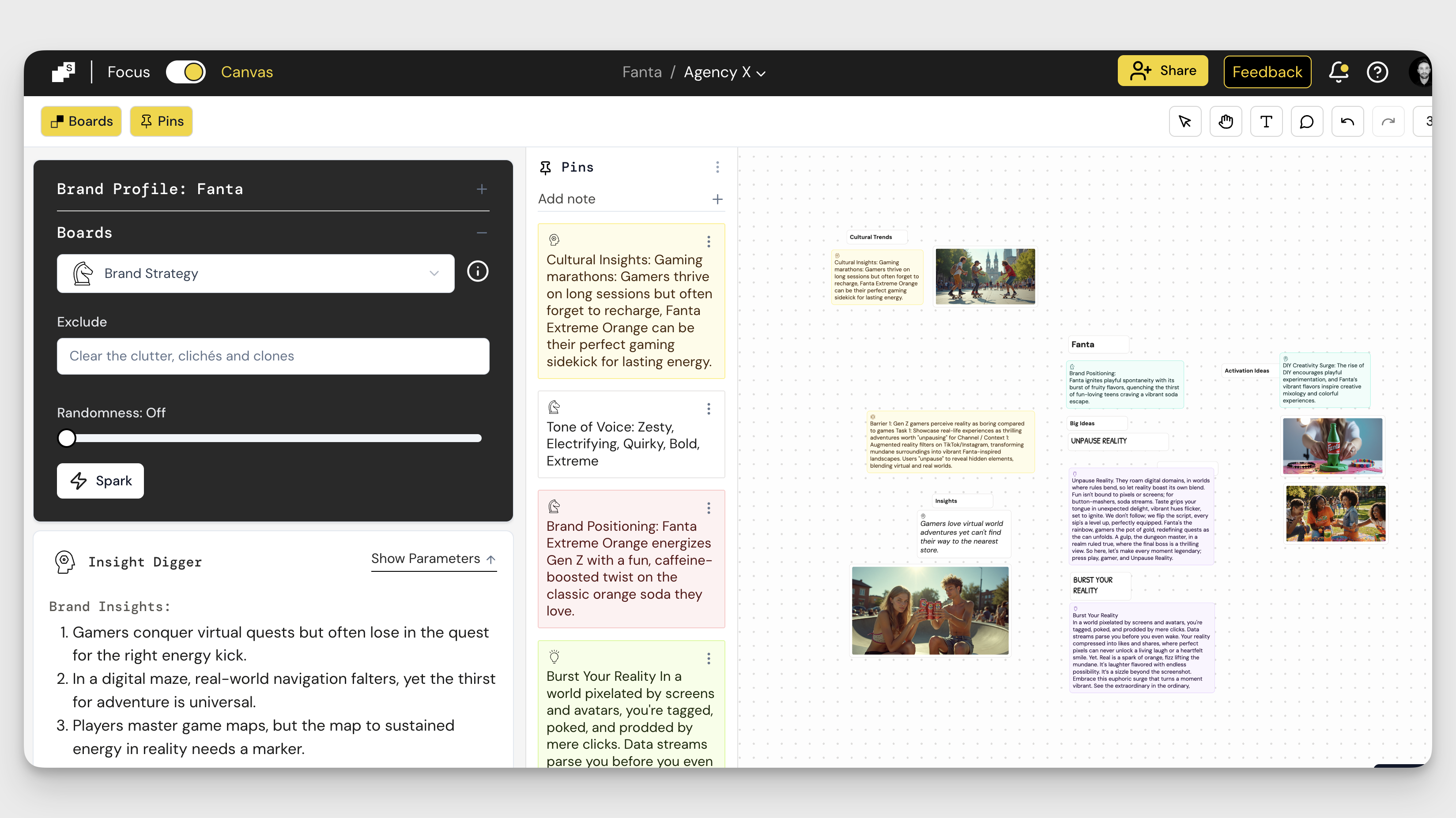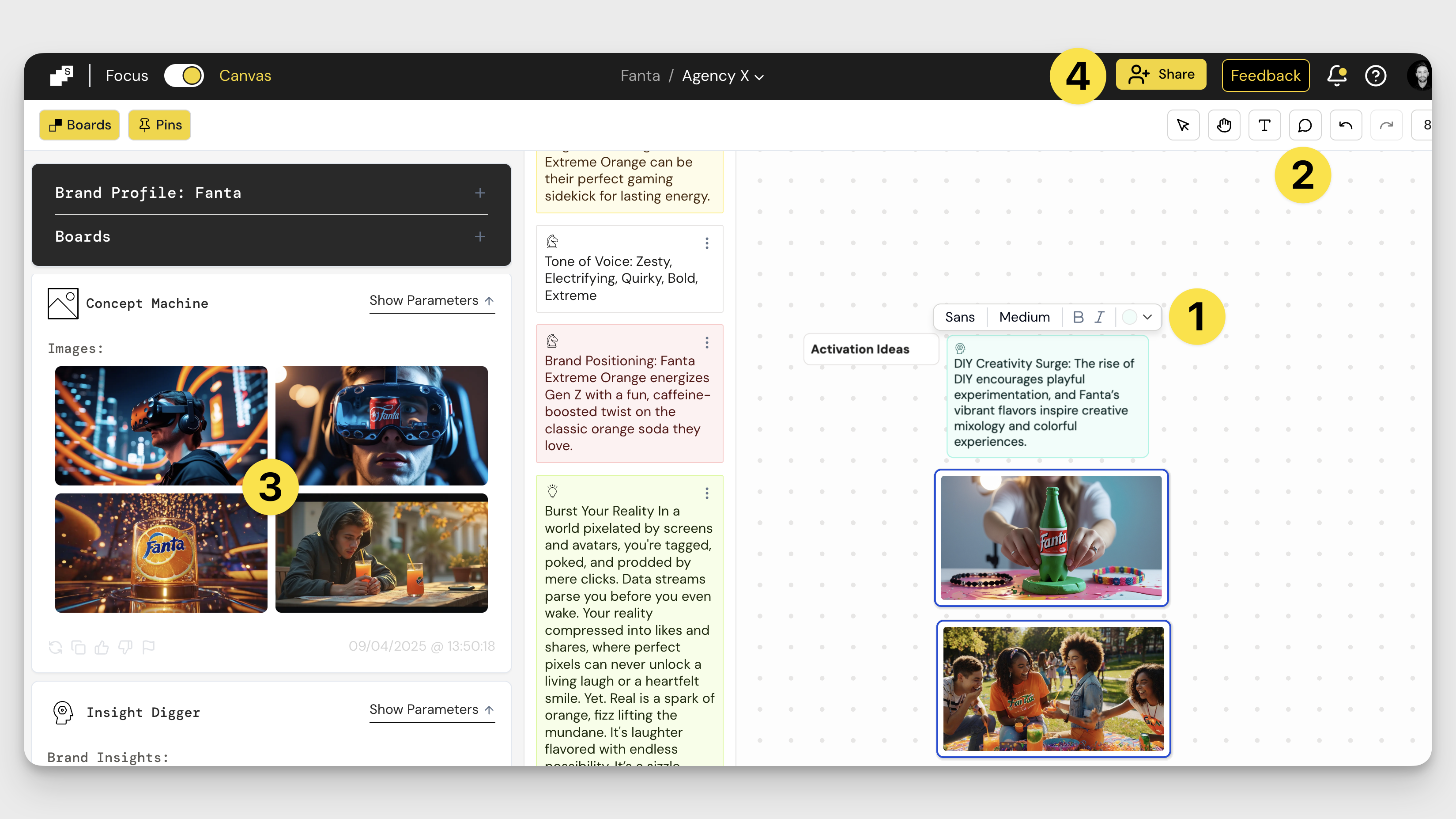 - Want to bring in visuals? You can drag in images generated in the Concept Machine or copy and paste images from the web directly into your Canvas.